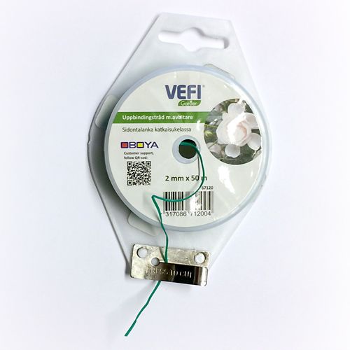 Plastöverdragen grön metalltråd som levereras på rulle med praktiskt avbitare.