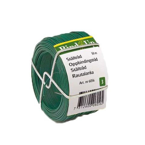 Skonsam bindtråd av grön plastöverdragen ståltråd.