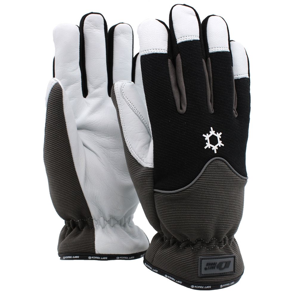 Varm och vattentät vinterhandske som andas. Lämplig för alla slags utomhusarbeten. Tillverkad av LWG-certifierat och slitstarkt getskinn med M-tex-membran som gör handsken vind- och vattentät, med överlägsen andningsförmåga. Innanför membranet sitter ett skönt och varmt fleecefoder. Ovanhand i svart och grå spandex med reflexpiping. Ordentliga förstärkningar i tumgrepp och fingertoppar.