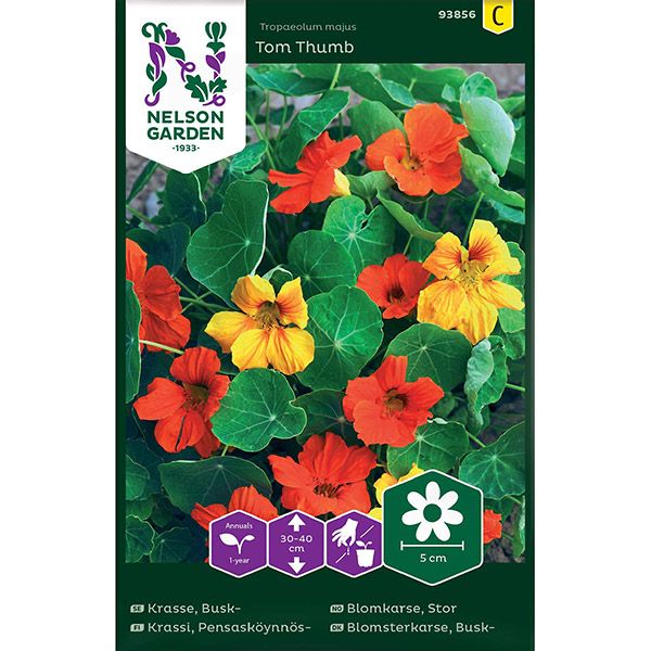 Färgstark sommarblomma i gula, orange och röda nyanser. Sorten ger kompakta plantor, fina som kantväxt, i balkonglådor och i rabatter. Blommorna går att äta, dekorativa i sallader. Omogna frön kan läggas in som kapris. Trivs fint i mager och väldränerad jord. I alltför näringsrik jord utvecklas bladen på blommornas bekostnad. Vattna regelbundet. Lägg fröna i ljummet vatten ett dygn före sådd, så gror de säkrare.