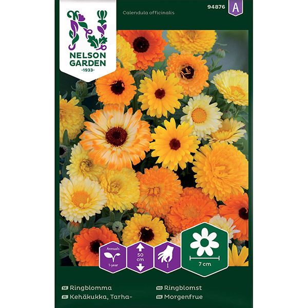Ringblomman är en blomvillig och lättodlad blomma i lysande färger. Blandningen ger olika nyanser i gult, aprikos och orange. Vacker att odla i rabatt och grönsaksland. Fin till snitt. De färgstarka blombladen går att äta, dekorativa i sallader och drinkar. Trivs i näringsrik och väldränerad jord, men är anspråkslös. Vattna vid torka. Klipp bort vissna blommor efterhand, så förlängs blomperioden. Frösår sig gärna om blommorna får vissna och fröna utecklas. Plantan kan brukas ner som gröngödsling på hösten.
