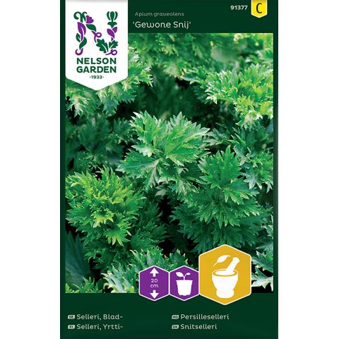 Bladselleri - Gewone Snij eller persiljeselleri som den även kallas har en mycket frisk aromatisk sellerismak. Bladen skördas efterhand på samma sätt som persilja och används som krydda i t.ex. sås, soppa, grönsaksblandningar och sallad. Kan även torkas. Trivs i näringsrik och mullrik jord. Vattna rikligt.