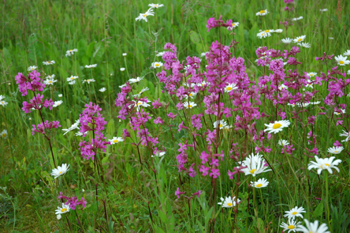 Rölleka, Liten blåklocka, Backnejlika, Gulmåra, Rödfibbla, Gråfibbla, Flockfibbla, Fyrk. johannesört, Rotfibbla, Blåmunkar, Åkervädd, Prästkrage, Gulsporre, Käringtand, Tjärblomster, Bockrot, Femfingerört, Bergssyra, Mandelblom, Gullris, Styvmorsviol