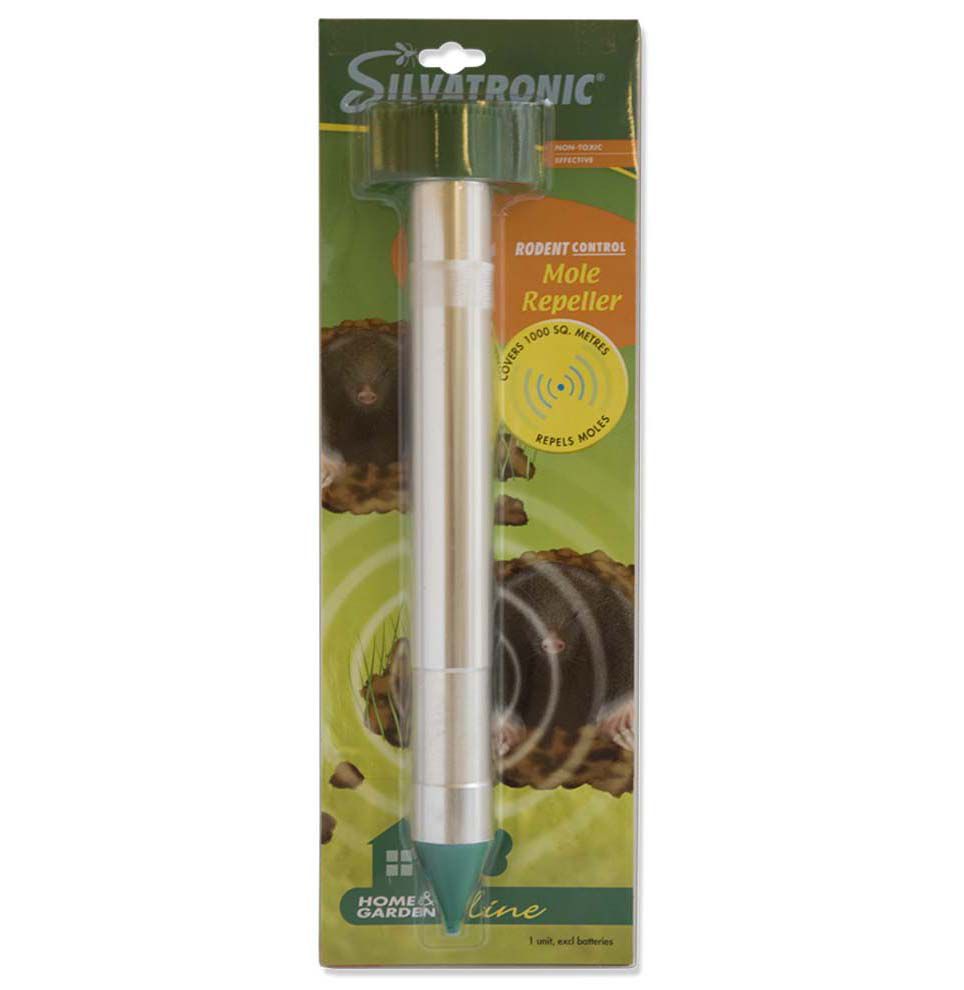Viktigt: Drivs med 4 st 1,5 V batterier. Batteribyte efter 4-6 månader. Batterier ingår ej!Fungerar bäst i lerpackad jord, lite sämre i sandjord då vibrationerna inte sprids på samma sätt.